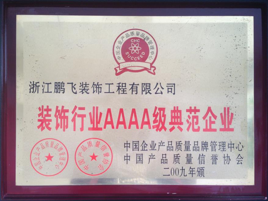 浙江鵬飛裝飾工程有限公司成了于1995年,被評(píng)為全國(guó)優(yōu)秀裝飾企業(yè),是一家專業(yè)從事室內(nèi)外裝飾、設(shè)計(jì)、施工、監(jiān)理、材料銷售及售后服務(wù)一條龍服務(wù)的大型環(huán)保型企業(yè)。企業(yè)每天都在不斷自我突破和自我創(chuàng)新,并在產(chǎn)業(yè)創(chuàng)新、商業(yè)模式、設(shè)計(jì)施工、專業(yè)技術(shù)、文化建設(shè)、團(tuán)隊(duì)建設(shè)都取得了矚目的成績(jī),成為全國(guó)各大裝飾名企競(jìng)相互動(dòng)學(xué)習(xí)交流的典范企業(yè)。 歷年來(lái),鵬飛裝飾經(jīng)過(guò)市場(chǎng)和時(shí)間的磨練