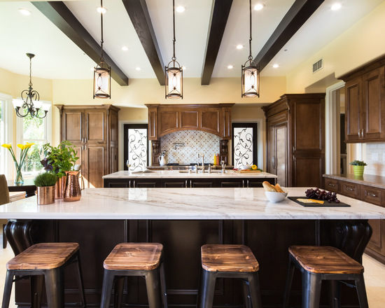 想把日子過得精致,廚房也要好好裝點(diǎn),放上一束插花,用活力嬌媚為廚房添彩,中島的存在可以作為臺(tái)柜與餐廳兩用。 大戶型的廚房簡(jiǎn)直美若畫卷,開闊的采光讓做飯也成為一種心情明朗的享受。
