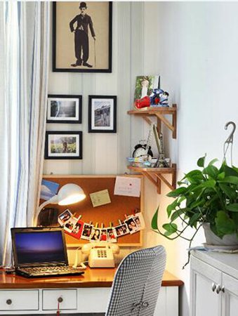 X寶網或者家具大賣場都會有半面白板半面軟木板的掛板賣,既方便思考、記錄、安排工作事務,又可以展示心愛照片、明信片,工作學習的時候能夠不時提醒自己的進度、偶爾觀賞照片放松心情。