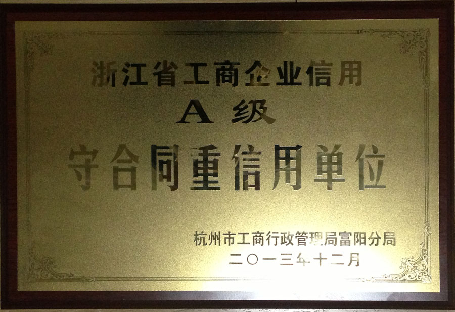 浙江省工商企業(yè)信用A級(jí)守合同重信用單位