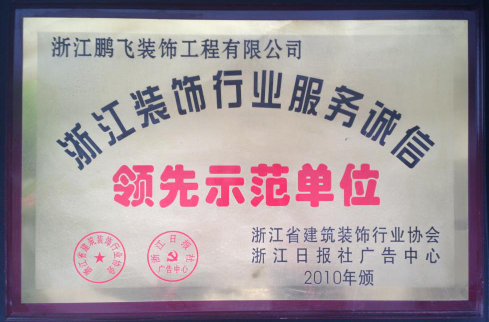浙江裝飾行業(yè)服務(wù)誠信領(lǐng)先示范單位