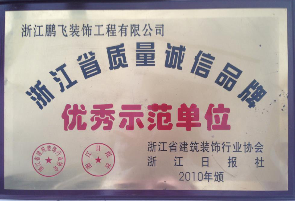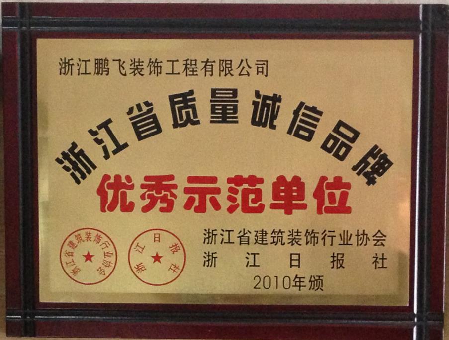 浙江省質(zhì)量誠(chéng)信品牌優(yōu)秀示范單位