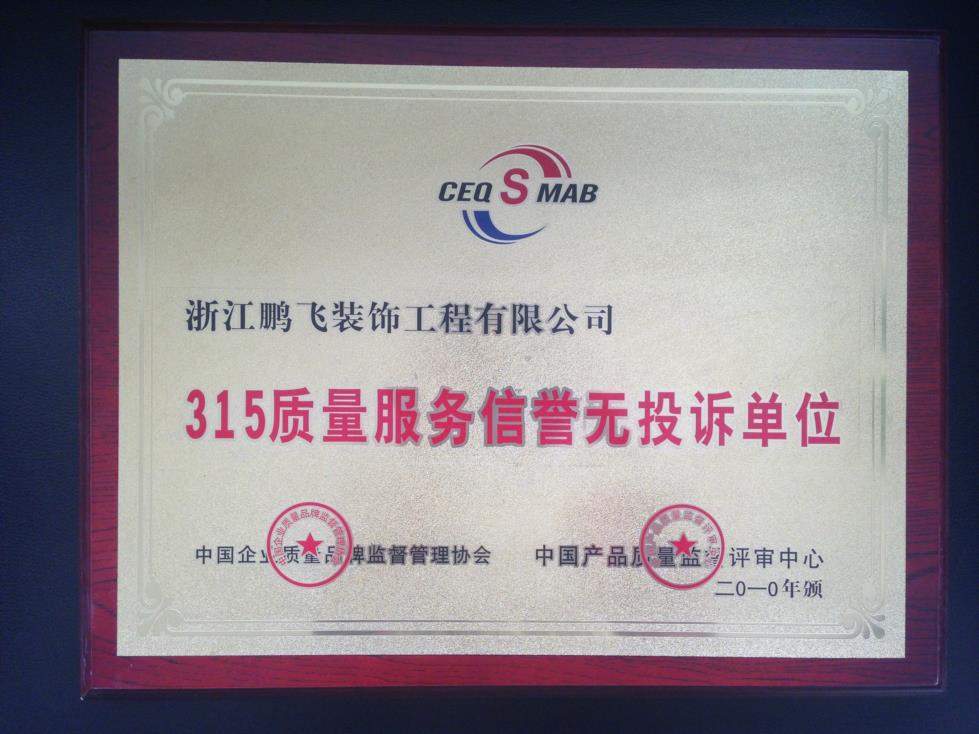 2010年315質(zhì)量服務(wù)信譽(yù)無(wú)投訴單位