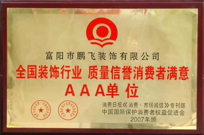 全國(guó)裝飾行業(yè)質(zhì)量信譽(yù)消費(fèi)都滿意AAA單位