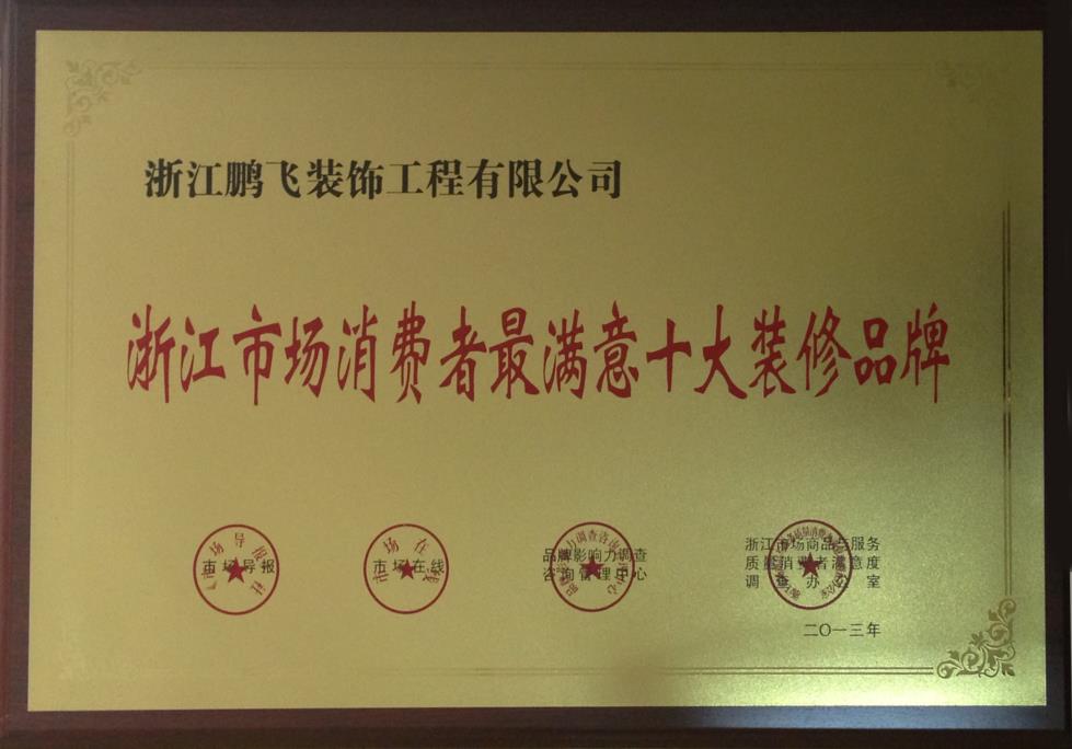 浙江省消費(fèi)者最滿意十大裝修品牌